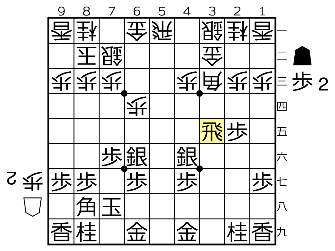 【第2図】☖5五同角の局面