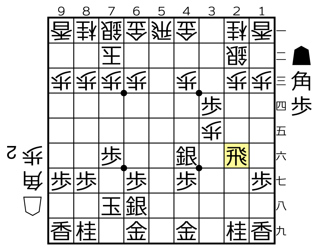 ☗5六歩 ☖同 飛(第1図)